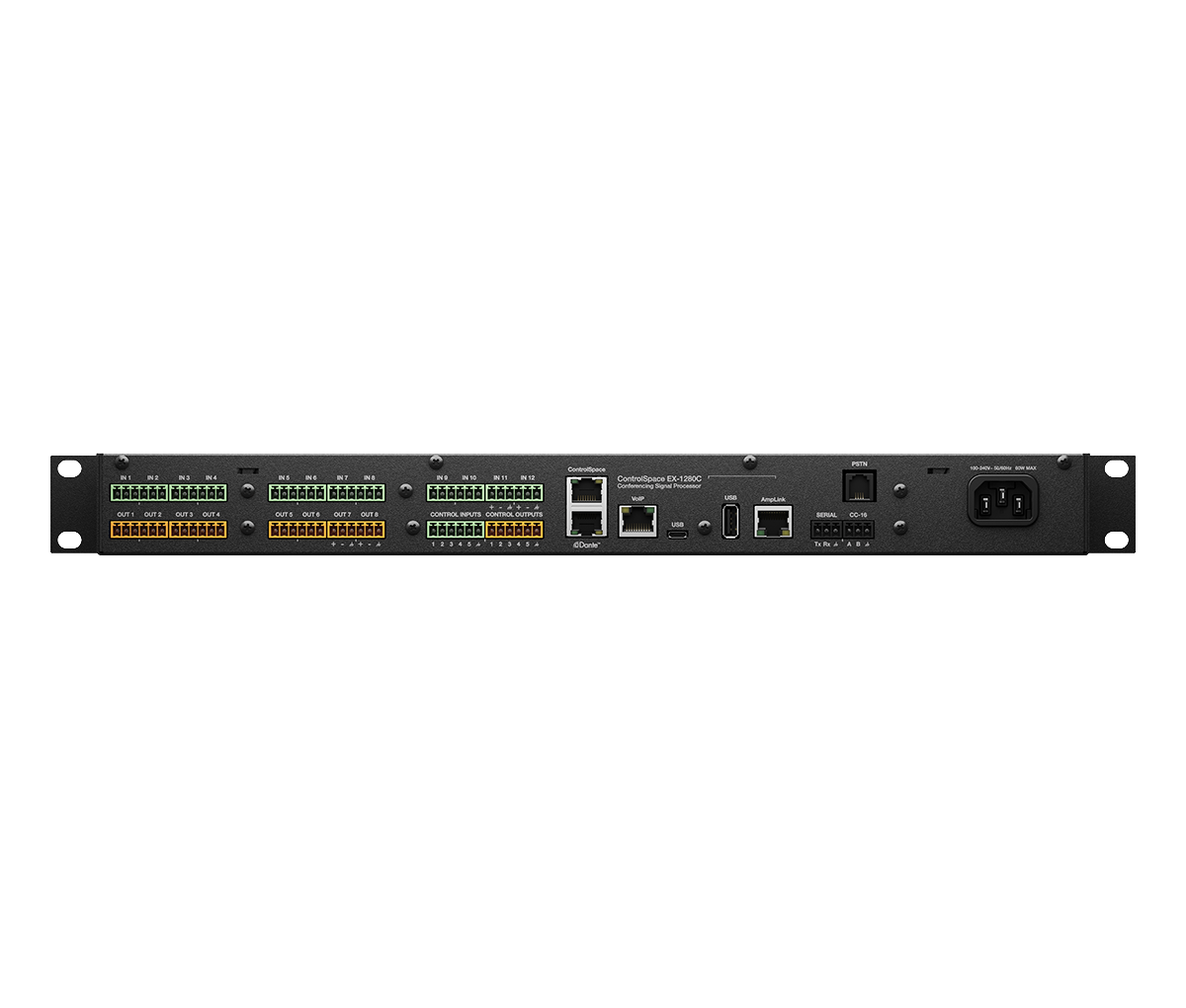● 12 個(gè)聲學(xué)回聲消除器 (AEC) 路由至模擬和 Dante? 輸入,多個(gè)參考信號(hào)通道能夠讓一個(gè) EX-1280C 處理器支持多個(gè)房間,或多個(gè)處理器共享 AEC。