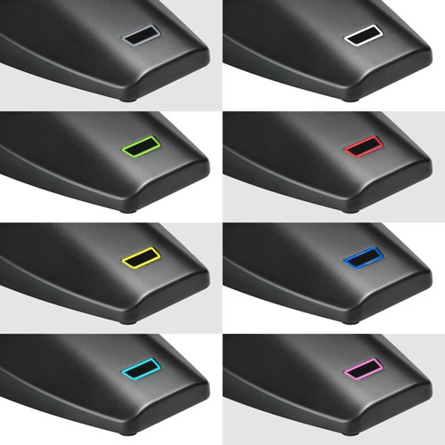② 臺(tái)架供電模組和鵝頸管組件均內(nèi)置RGB LED燈,可指示話筒的開(kāi)/關(guān)狀態(tài)。