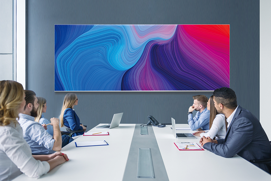Absenicon C系列寬屏帶來更自然和高效的混合會議體驗。該系列提供154",181"和208"三款屏幕尺寸,適配21:9畫面內容。主要用于視頻會議,董事會議,在線教育等場景,以及與微軟Teams?和zoom等視頻協作平臺搭配使用。
