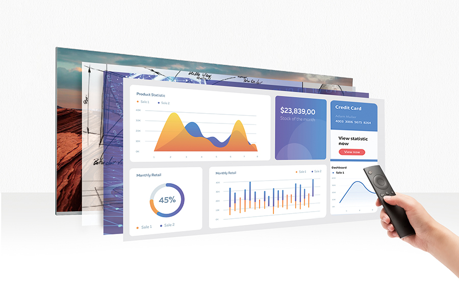 ① 超寬屏多內容展示更靈活:與傳統16:9LED顯示屏相比,C系列寬屏增加了33%屏幕空間,通過此屏幕您可以看到更大幅的內容,滿足更多需求,提升會議效率。